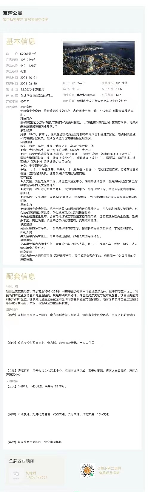 ◆人文圈:灣區之光摩天輪、灣區之聲演藝中心、深圳書城灣區城、濱海廊橋及寶安新三館等豐富多彩的人文配套環繞;