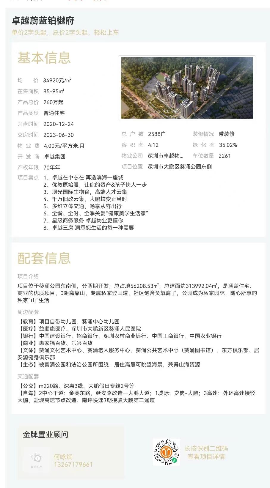 樓盤:卓越閩泰云奕府物業類型:普通住宅戶型:3室、4室面積:約85-110平米總價:約480-690萬聯系人:何詠斌聯系電話:13267179661