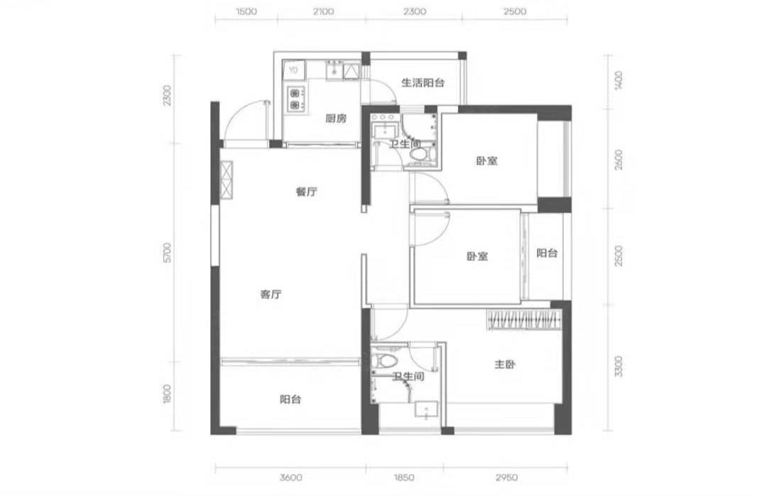 房屋戶型:1室 、2室 、3室 、